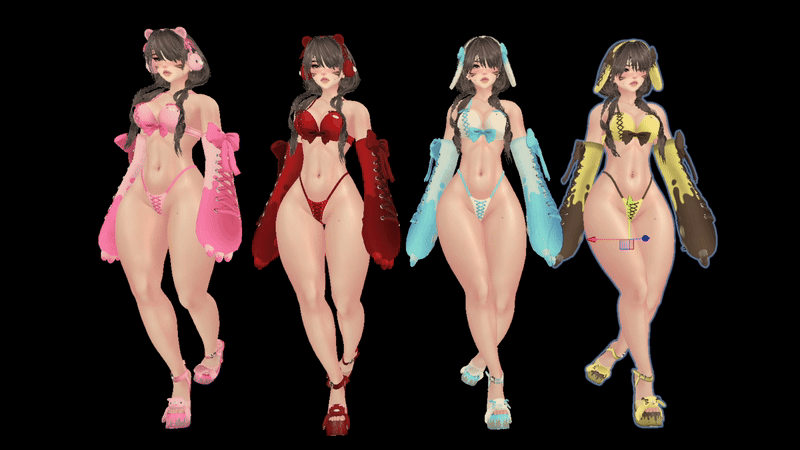 - Paw Bows, Earmuff Bows, Bunny ears, Bikini Bows, Bikini Tail, Heel paws/tail/ears are all rigged)