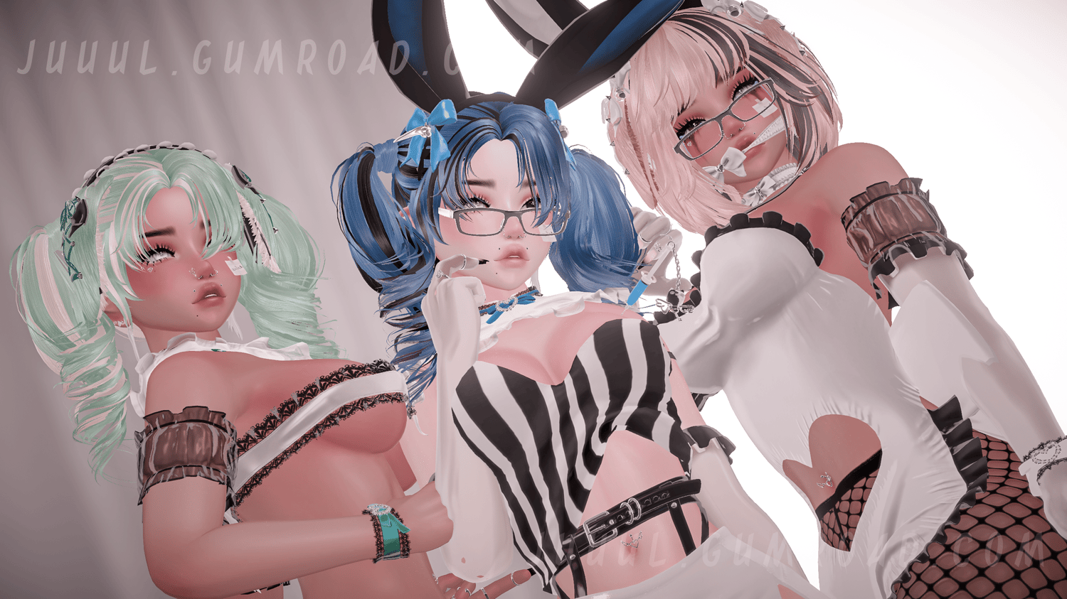 -15 extras (bunny headband, maid headband, bun bib, bunny hat, choker, cuffs, harness, gag, sticky note, syringes, necklace, gloves, socks, tights, glasses)