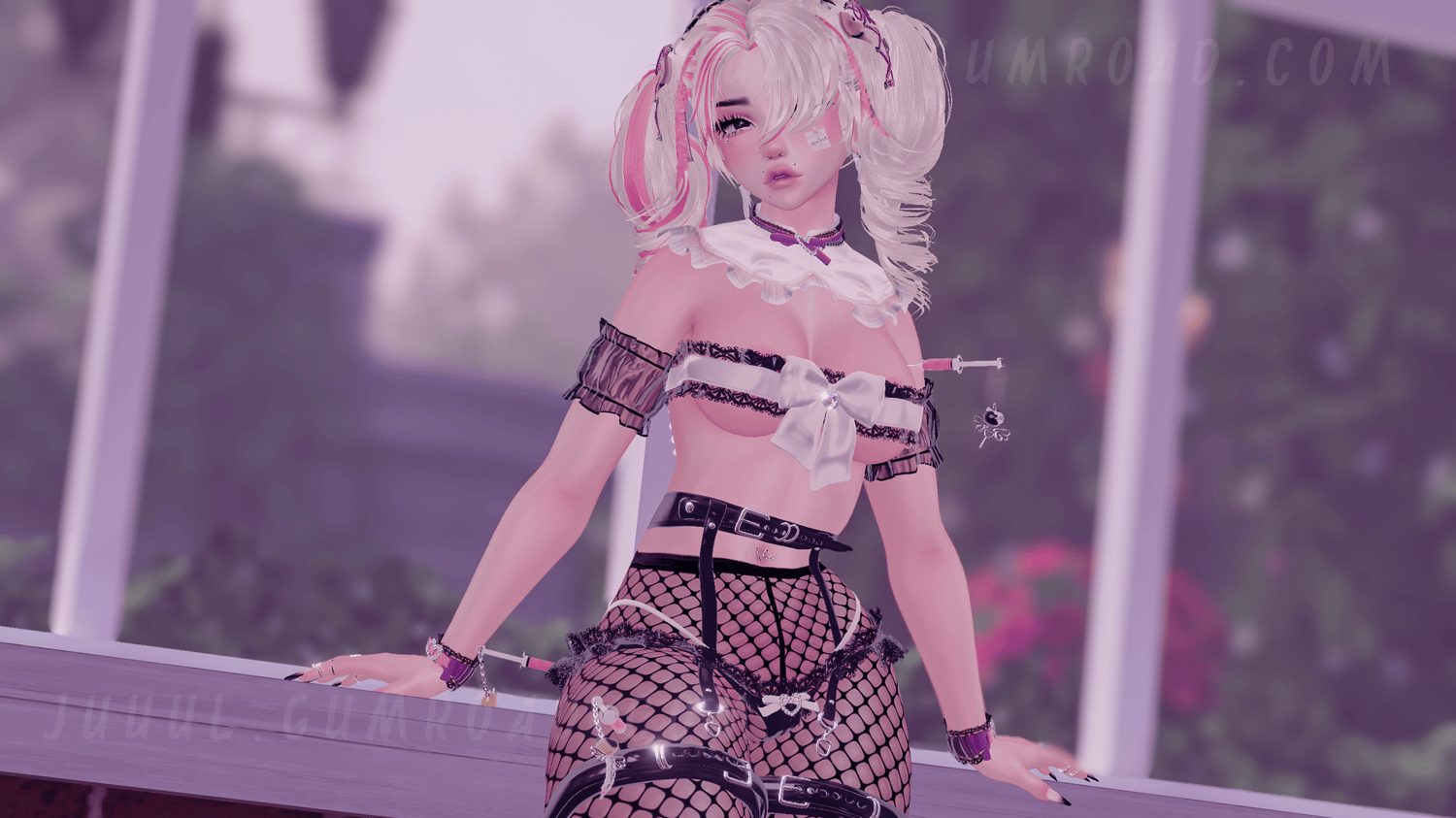 Bunny Hat - Meowuw /Bun lace set, Sleep set with socks, Heels, Pigtails, Skirt - , nessyy. /Short Hair, Bangs, Head (Heavily edited facetexture and mesh)- Saikura / Syringes/Piercings/Harness, -MilkyMutt / Eye Texture - Fair / Bun set - JinxieWinks (Edited by Meowuw) / Jacket - Bunisu / Necklace - Bell /Long Hair - Sleepy /Sticky note texture - Honeylab / Body - SanyaCosmos /Sticky Note -The lost kitten / Ring -Holoexe/Fishnets - Velvet/ Glasses - C391 / Menu Icons - Maddiiee /