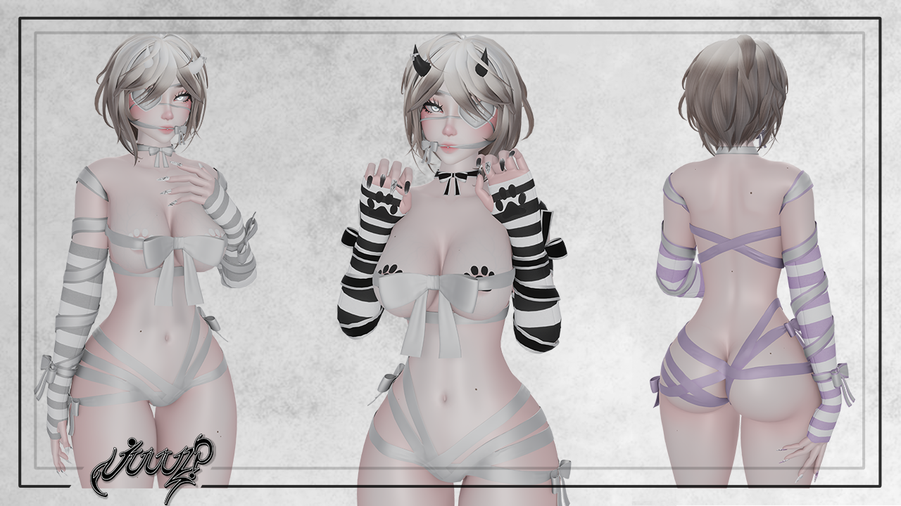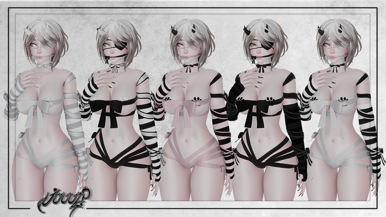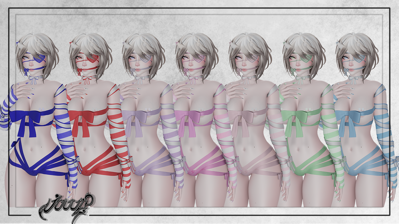 -ribbon top + arm ribbons + ribbon gag + and choker ribbons are all rigged