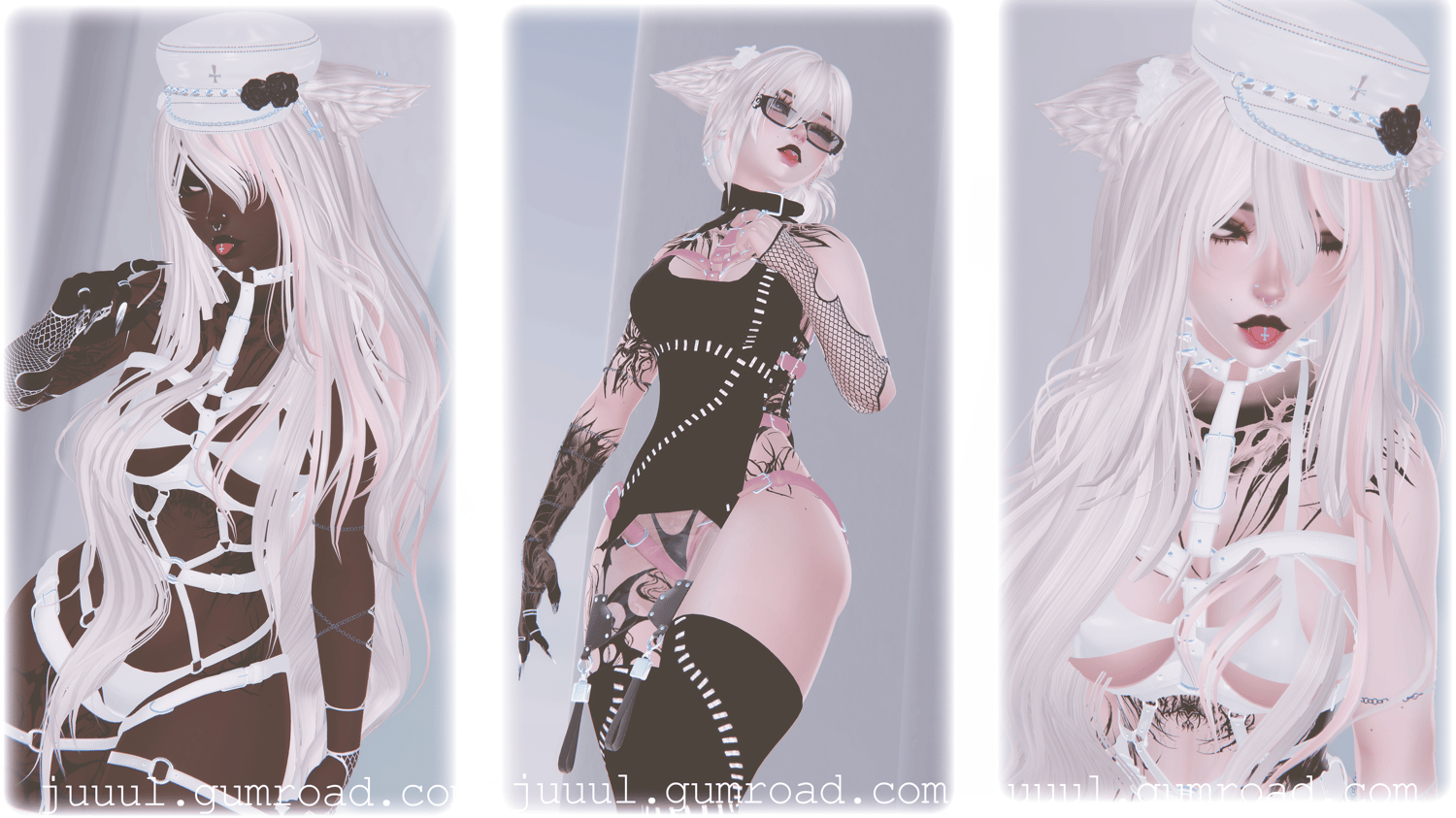 Body texture(Edited) -France / Eye Texture - Fair / Jewelry - juuul. - meowuw - holoexe - apyr - kri/ Demon Set - GoodSoup / Hand Gloves - Yuuichi / Harness and Bandeu and Beret and belt- holoexe / Hair - Nessy - Saikura / Dress set - Douji / Shorts - Pickle3d/ Harness Set and Heels - MEEVA / Bodysuit - Dumpling / Ears and Pants - apyr / Cat tail - JinxieWinks / Tanktop and Sweater and Harness - Buneskapp / Body - SanyaCosmos / Head - Sivka / Eyes - HoneyLab / Sneakers - Hayweee / Undies Set and Fishnets - Juuul. / Glasses - lili / Facenote - MilkyMutt /